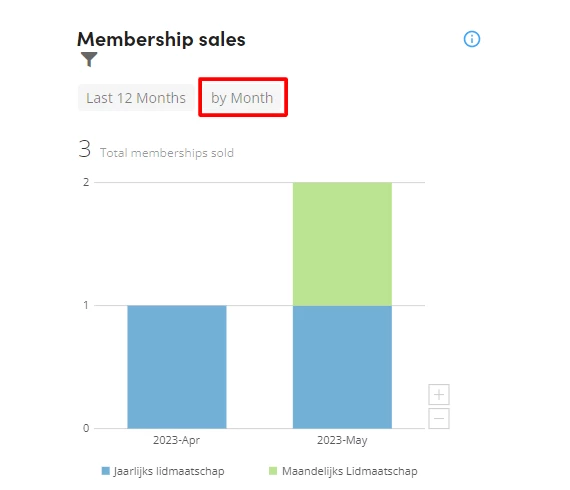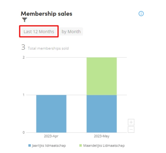 Tijdsinterval wijzigen: Gebruik het tweede filter voor de tijdsperiode om verschillende intervallen te kiezen (maandelijks, wekelijks, dagelijks, et cetera).