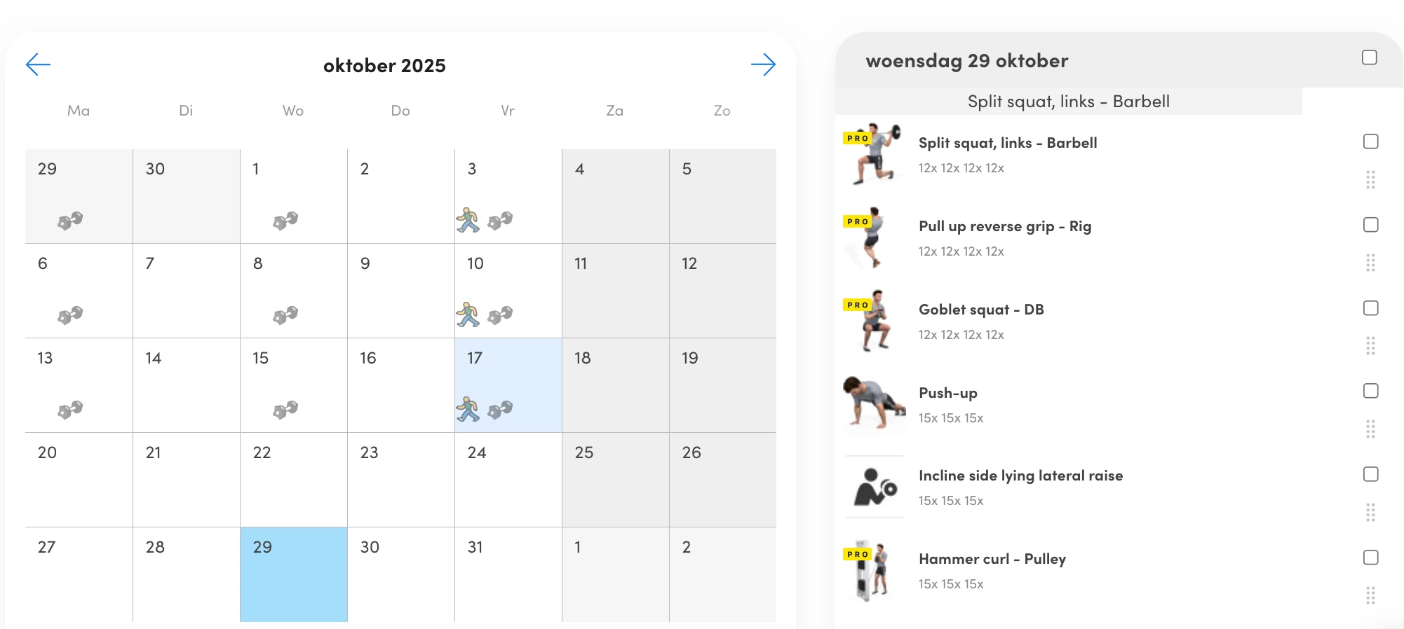 Wanneer ik het hele schema verwijder van Virtuagym blijven de oefeningen toch nog in de kalender staan, ondanks dat er geen gewichtje bij staat zoals normaal gesproken.