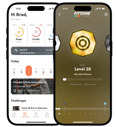 Door wekelijks 3.000 FitPoints te behalen, levelen leden niet alleen omhoog — ze blijven ook gezond volgens de WHO-standaard.
