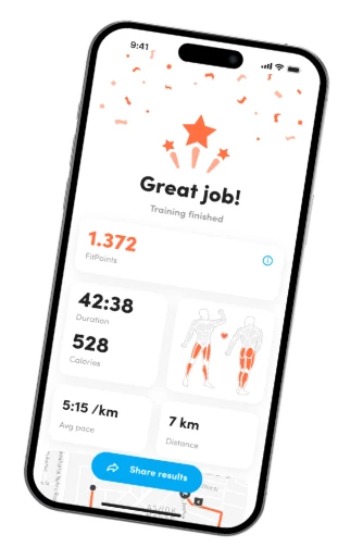 - FitPoints worden tijdens de training verdiend en na afloop automatisch toegevoegd aan de kalender, het Leaderboard en de levelling doelen.