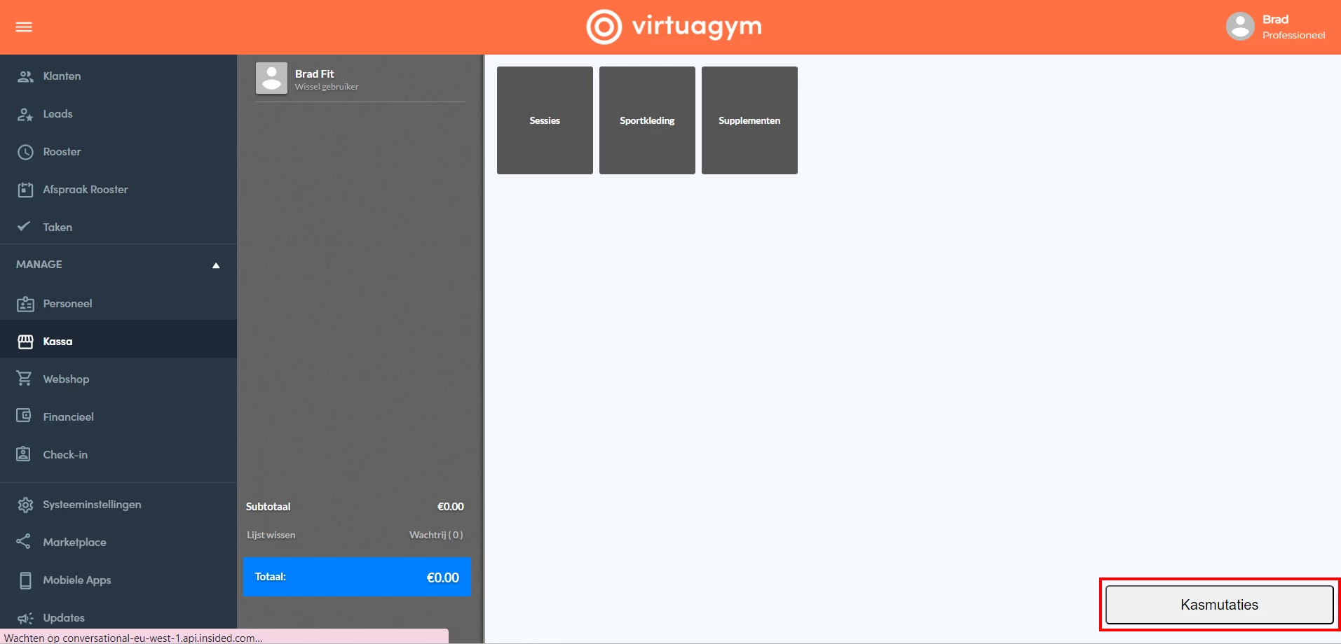 - Klik op Kasmutaties rechts onderin.