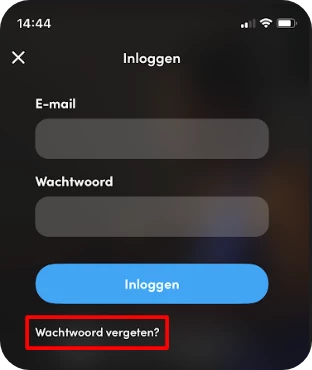 Optie 2: Ga naar de login pagina in de app of op het webportaal en klik op “Wachtwoord vergeten.”