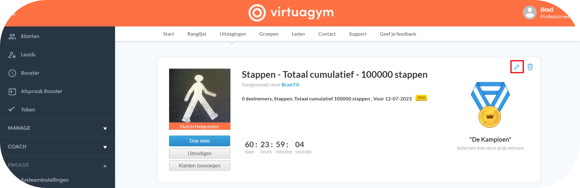 - Klik op het kleine potloodje rechtsboven in de uitdaging om de uitdaging te bewerken.